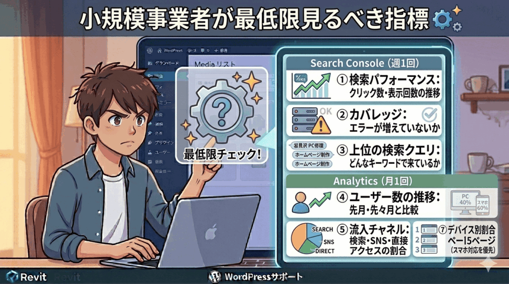データが多すぎて何を見ればいいかわからない方向けに、最低限確認すべき項目を絞ります。