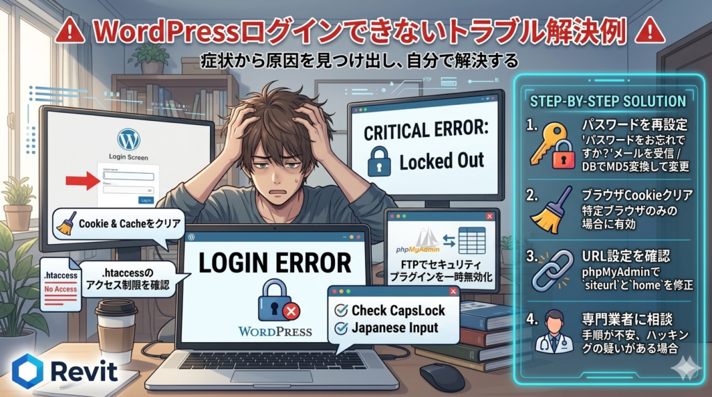 「WordPressの管理画面にログインしようとしたら、なぜかログインできない」という状況は、WordPressを使っていると誰でも一度は経験するトラブルです。
